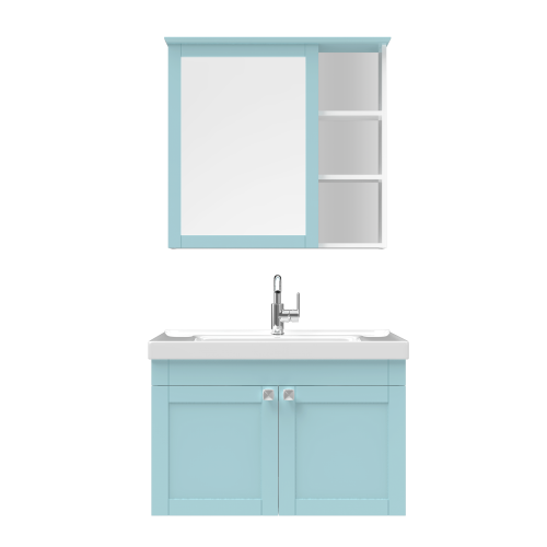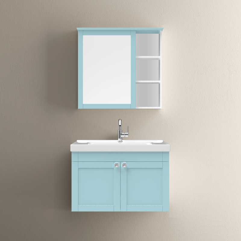01、材质:生态实木+pvc 2、颜色:柜体亚光白+门板浅蓝灰 3、陶瓷盆:12485自洁釉陶瓷一体盆 4、五金:无铜环保镜、304不锈钢缓冲铰链、 5、包装:3件/套